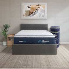 Colchón ortopédico con resortes encapsulados tipo pocket que actúan de forma independiente para darte soporte personalizado y reducir la transferencia de movimiento. Es un colchón suave y con soporte perimetral alto que refuerza los bordes, evita deformaciones y la sensación de caída al acostarte.