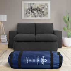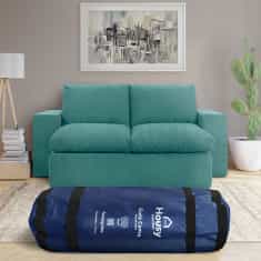 Sofá cama multifuncional de dos plazas, se convierte en una cama queen o dos individuales. Presentación comprimida