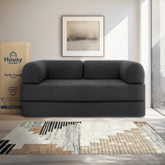Sofá cama plegable de dos plazas con cojines acolchados, se convierte en cama de 120 x 187 cm. Presentación comprimida